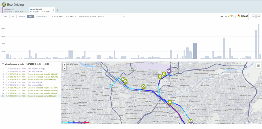 LATITUDM2M, le brinda una visión global de la calidad de la conducción en toda su flota, con opción de profundizar en evaluaciones específicas.
